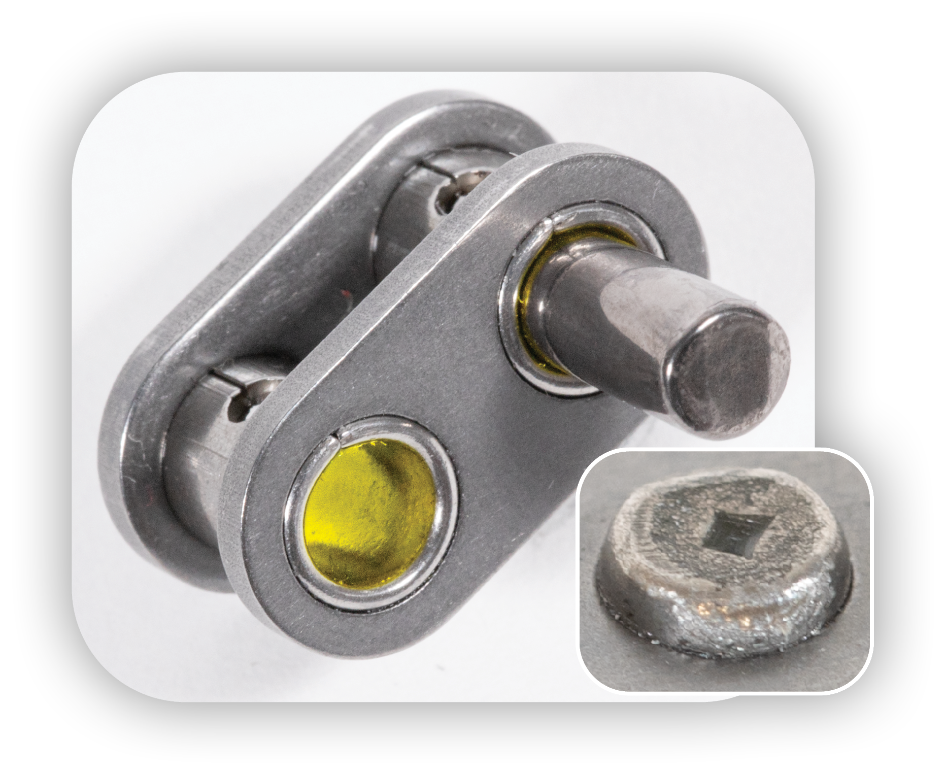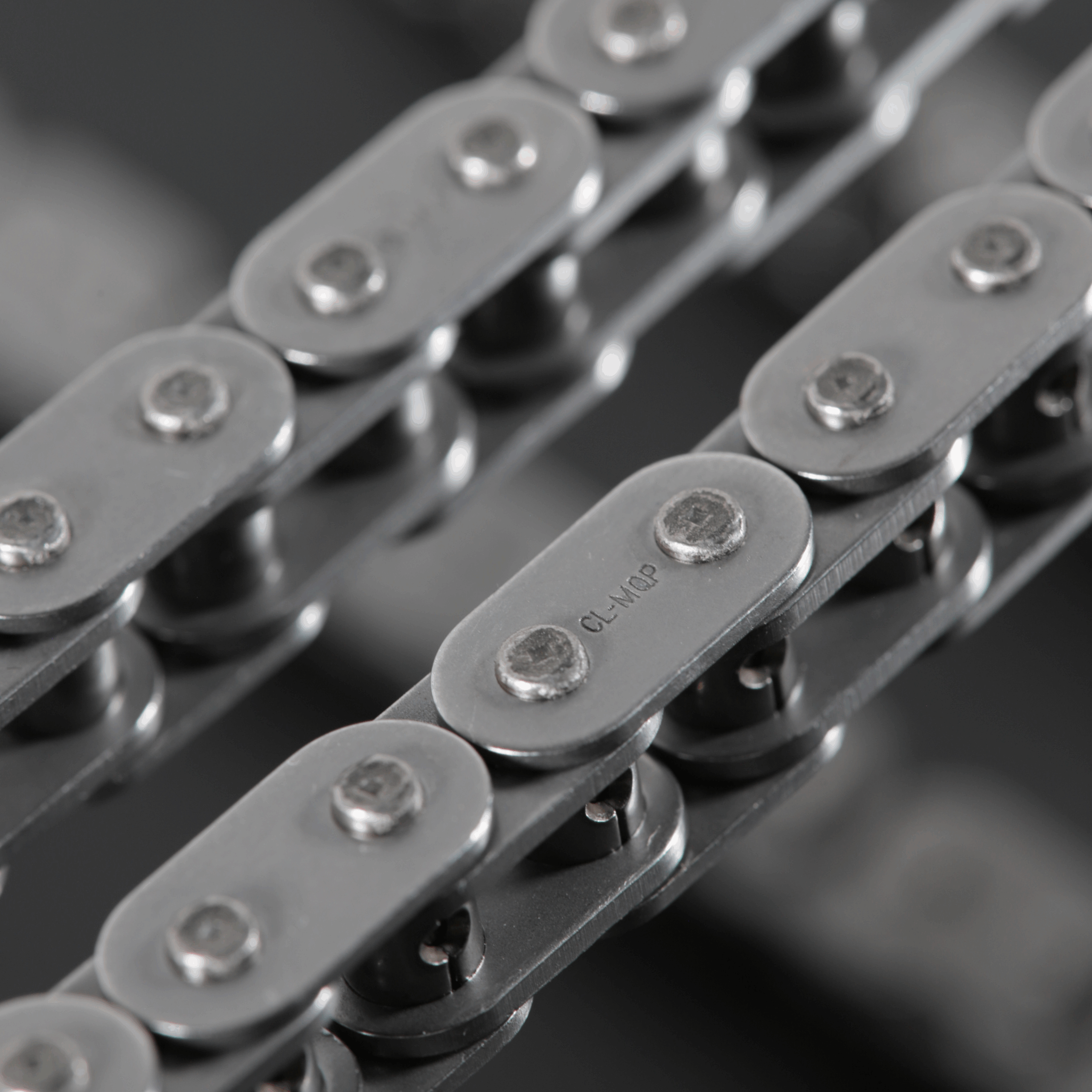Las cadenas Comline se fabrican con materiales de alta calidad y herramientas especializadas para un acabado superior. Los pernos se remachan con una carga completa a 360°, garantizando un soporte uniforme, a diferencia de las cadenas estándar con solapamiento en solo dos puntos.