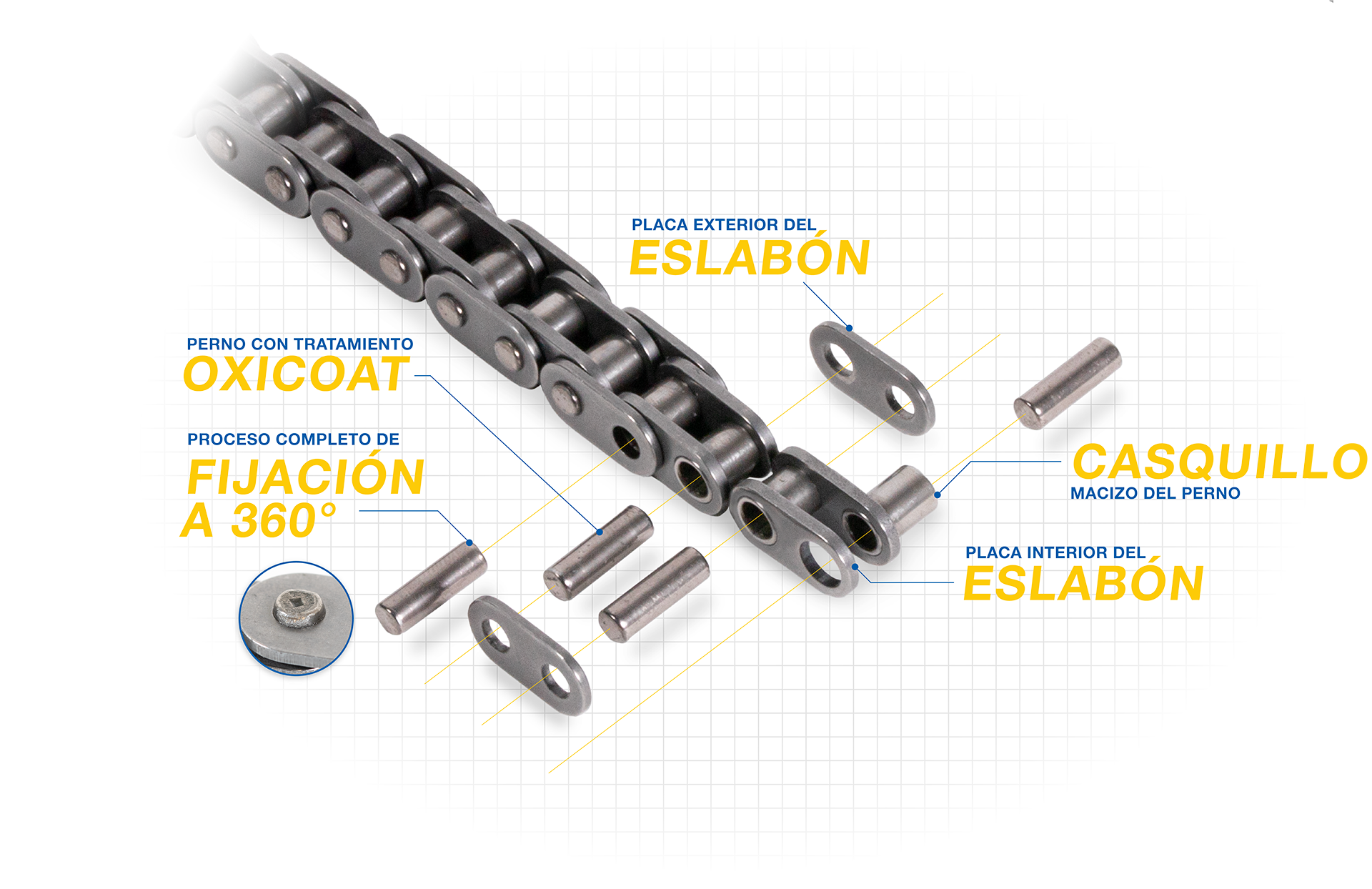 Protege el perno de la cadena en situaciones de lubricación deficiente.